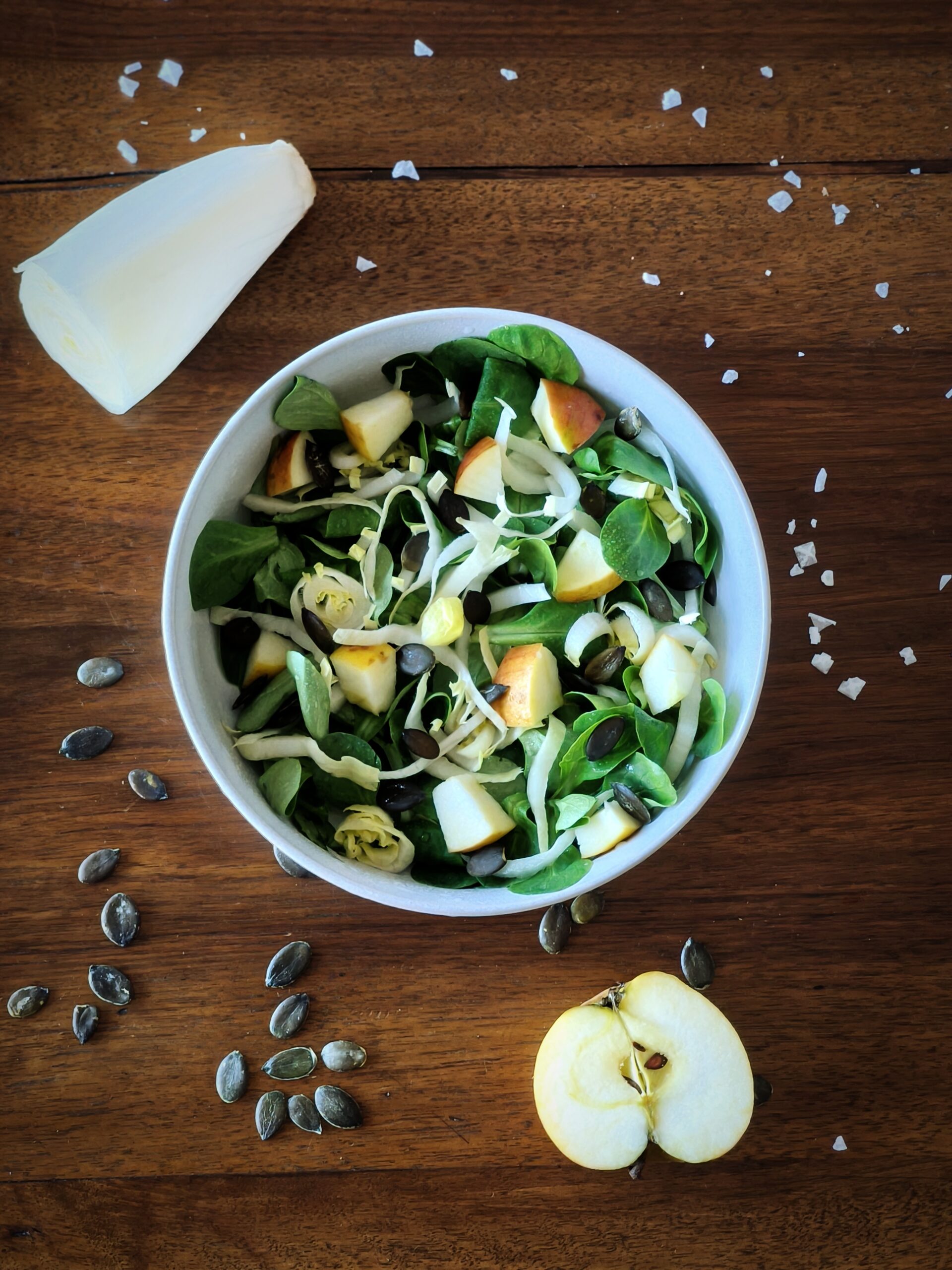 Winterlicher Salat mit Chicorée, Feldsalat und Apfel